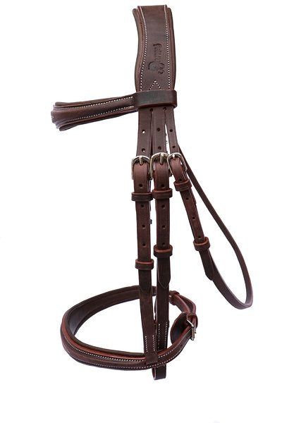 The Wave bridle is made with hand selected leathers for a unique look and quality. Removable flash noseband with padded calfskin liner. Shaped anatomically with a wide noseband, browband, and crown for maximum comfort.