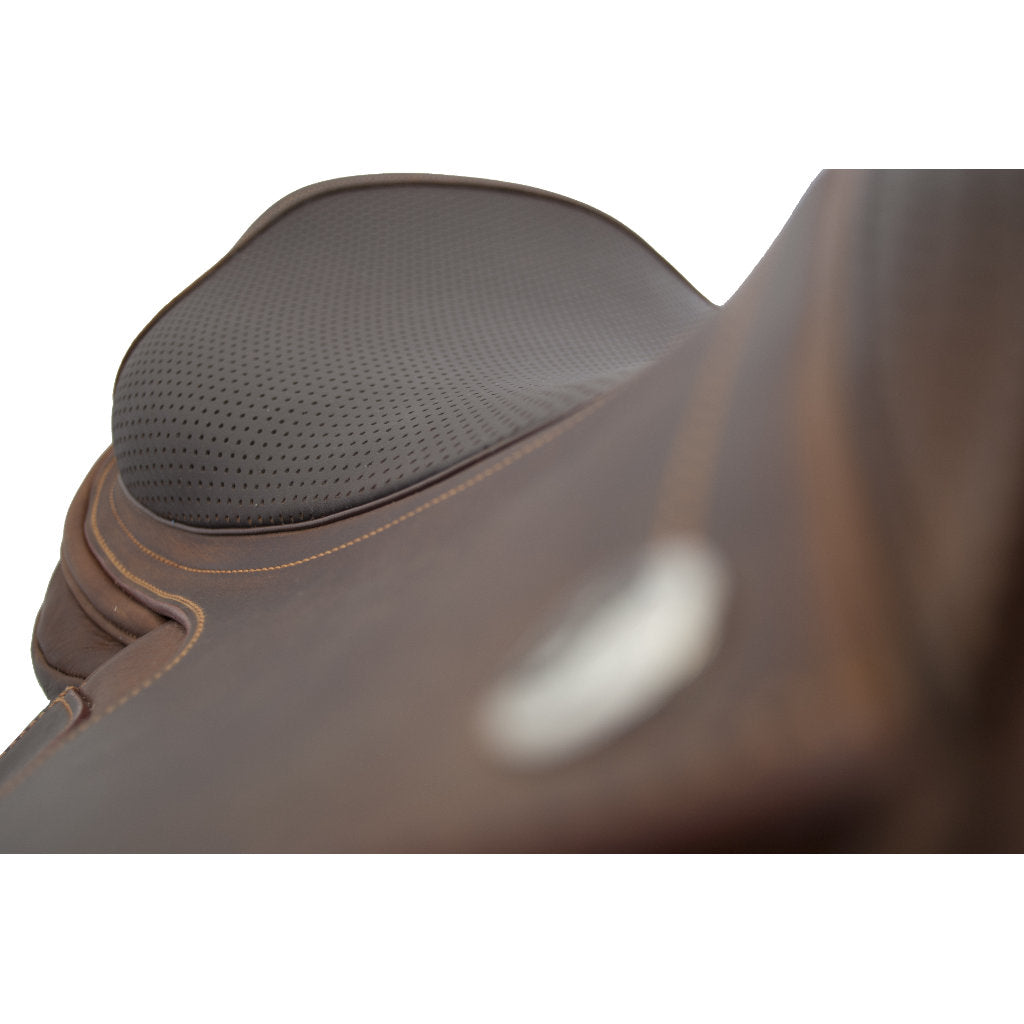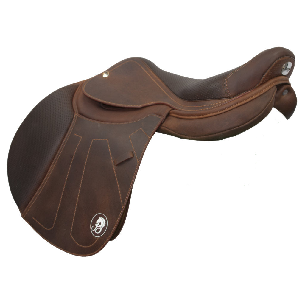 Complete with luxirous buffalo leather, the Sauter Saddle is a modern twist on a traditional close contact saddle. Handcrafted with the finest leathers and decorated with modern fancy stitching, the Sauter's sleek and fun design has become our most popular in the line up. For extra grip while soaring over jumps, the seat and knee roll are made with perforated leather. Our unique skirt and flaps are made with pull up, another genuine, handpicked leather, this time submerged in oils for a six month period, making maintenance minimum.